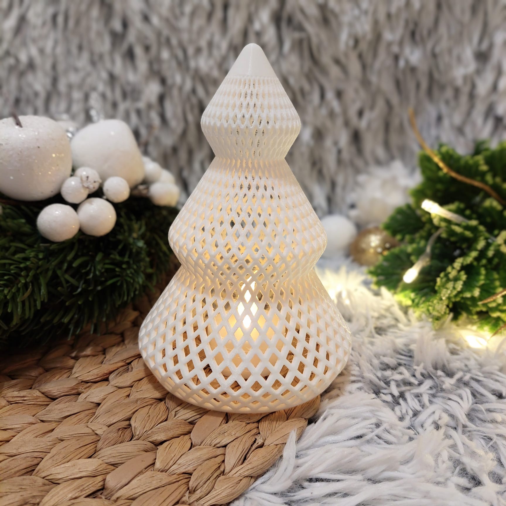 Vánoční dekorace v podobě stromku se síťovým charakterem. Je možné dodat včetně diodové svíčky, která stromeček prosvítí a dodá mu zlatavou barvu.